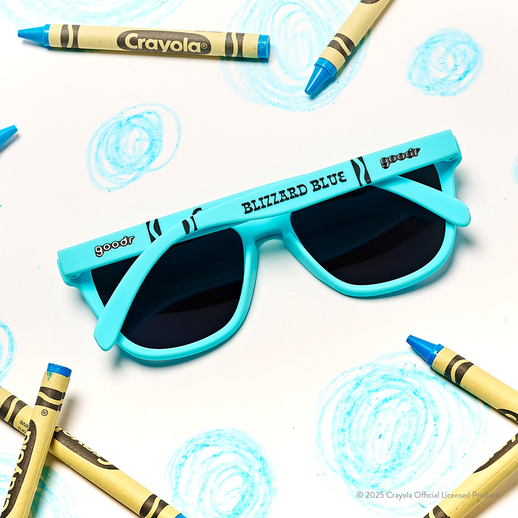 Blizzard Blue = cool, calm & a little chaotic. We channeled the retired color’s energy into limited-edition shades with blue reflective lenses & nostalgic Crayola packaging. It’s like diving into a snow day where school’s canceled & your only job is building the world’s best fort out of every cushion & blanket in the house, then wondering why your parents are so mad when they come home.