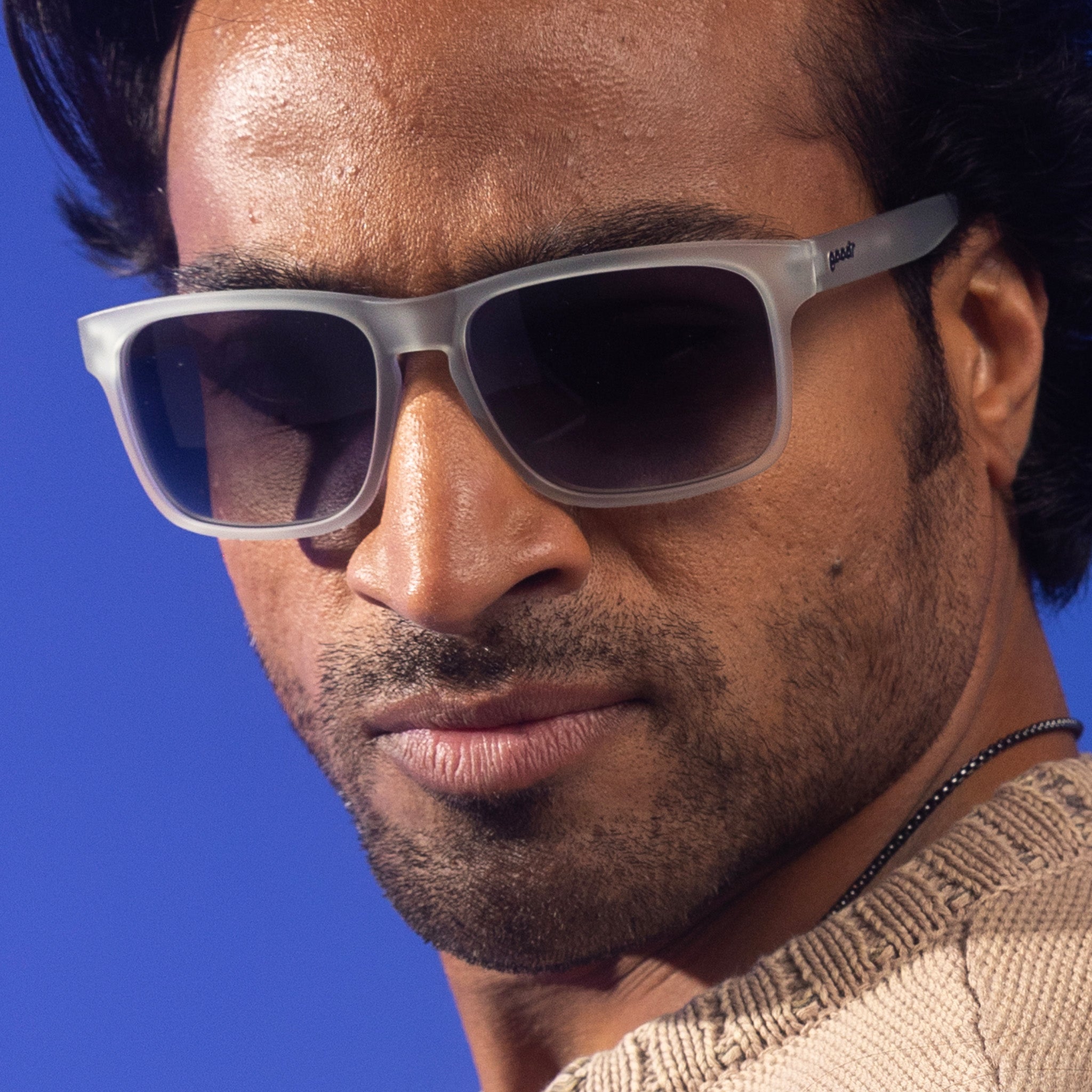 Casually Juggles Boulders brings effortless, bold energy to translucent gray Grand Gs with black gradient lenses. Whether you’ve got a larger noggin or like to play big with your look, these shades radiate strength and style without trying too hard. No slip, no bounce, all confidence. Perfect for casually juggling boulders while riding a unicycle, taming wild beasts, or just pretending gravity is optional.